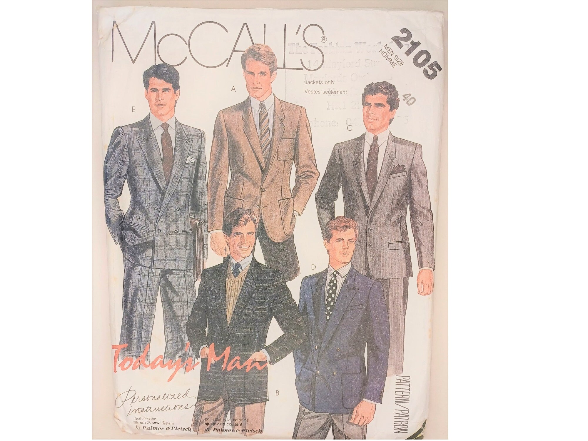 Mens Vogue Pattern 8988 Double Breast Jacket Norris Danta Ford